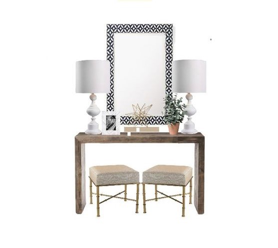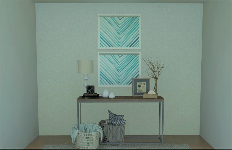 When accessorizing keep in mind of the scale and placement. Here are a few key rules. The space should look balance. Have a combination of small, medium and large objects. Start with a center piece (like a mirror or artwork). Then add a large piece or 2 on each side to give some height and balance ( like a lamp and vases) and then add filler pieces. (Like what I show here in the rendering) Large examples like: large vases, lamps or a plant. Then work your way down with a picture or smaller vase and then put in some filler pieces. You can add books or a box if you don’t have medium size objects and you need some height in some areas.